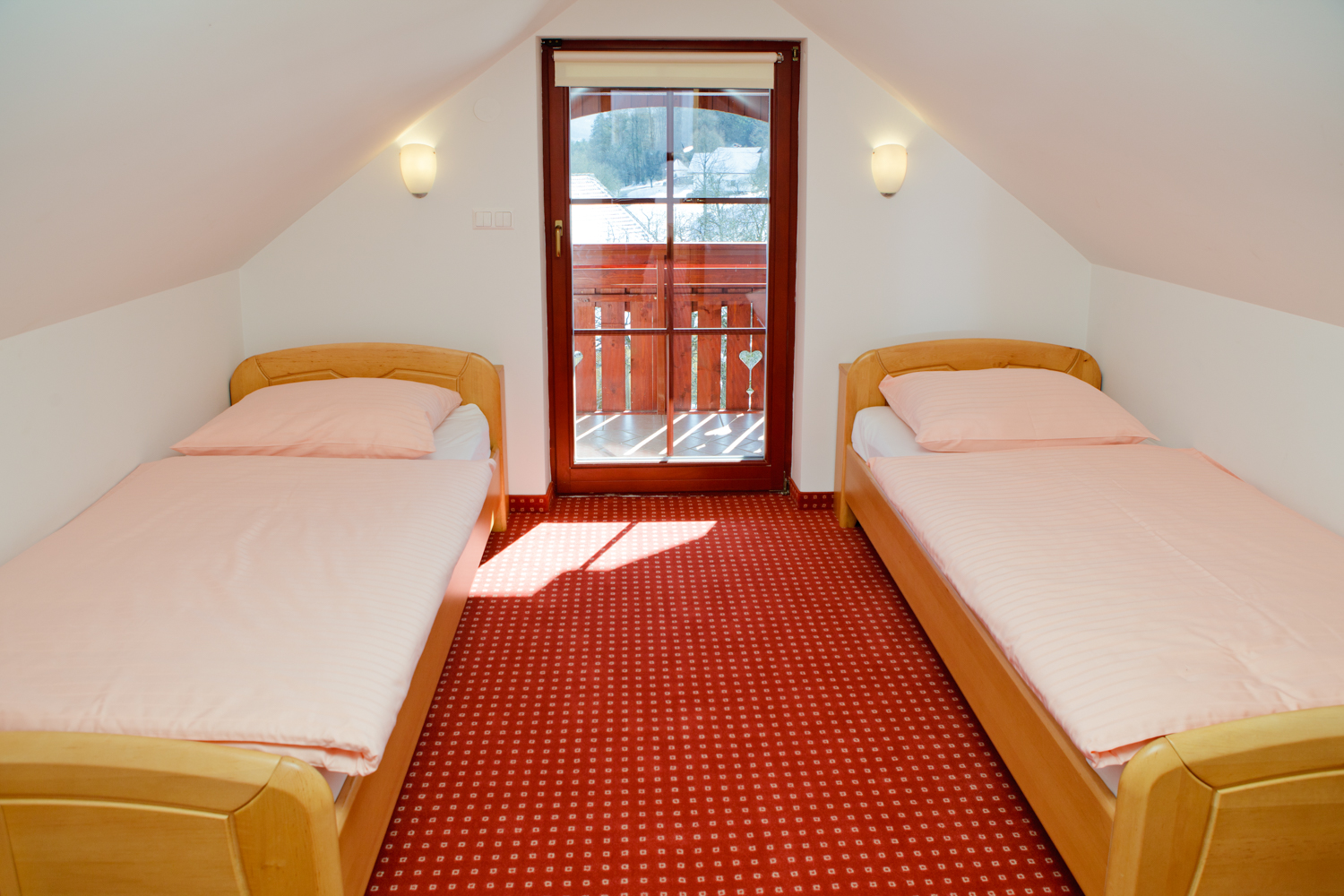 Sproščujoč spanec in počitek vam ponudi vsaka od 14 sob, v mirnem jutru pa z balkona čisto vsake pogled na prostrana polja in gozd.